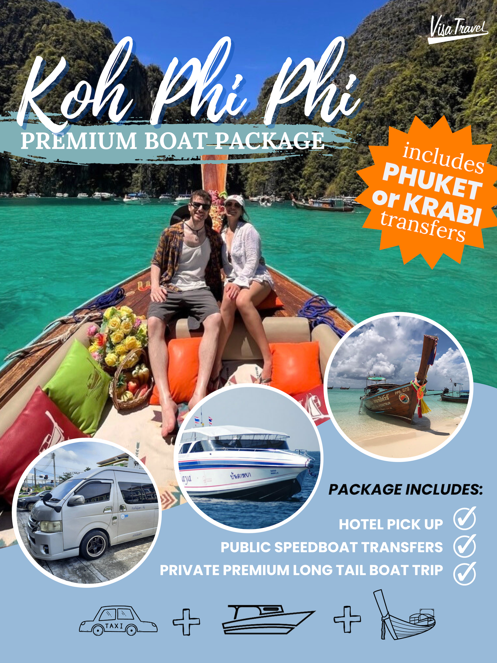 BOAT TYPE: premium long tail boat (+speedboat transfers)