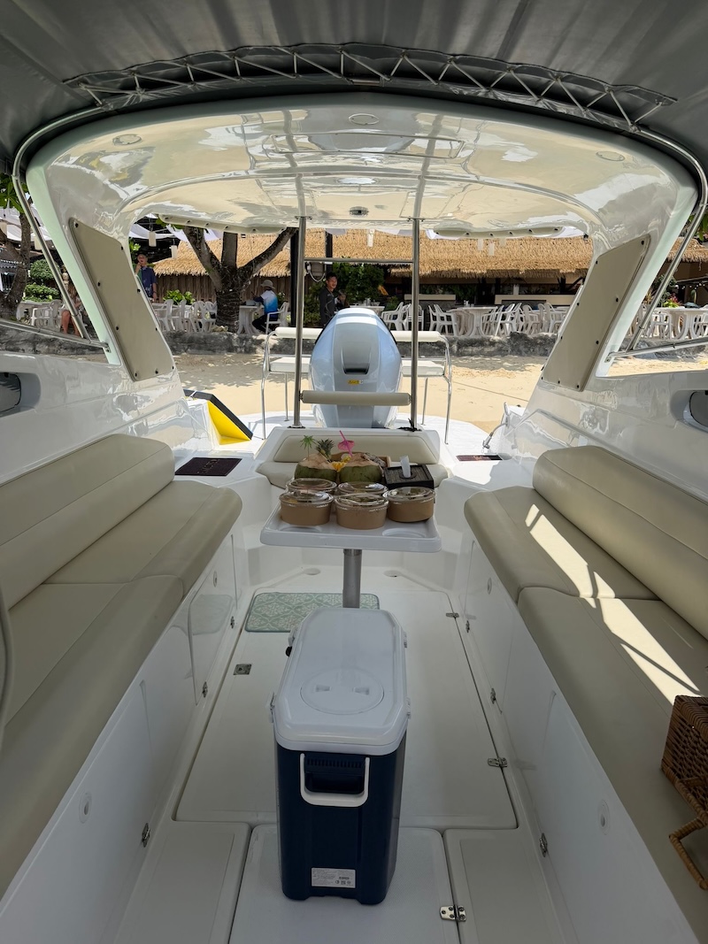Our luxury speedboat is a single-engine vessel, ideal for exploring the calmer, sheltered waters around the Phi Phi Islands. However, it’s not designed for long-distance travel across open sea, where conditions can quickly change.